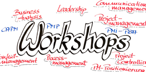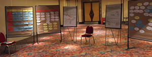 Flipcharts, Metawänden und anderen Hilfsmitteln und der